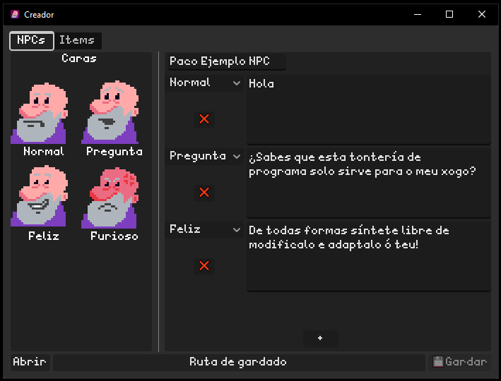 Simple editor/creador de NPCs e Items para o xogo cutre de mazmorras que estou facendo.